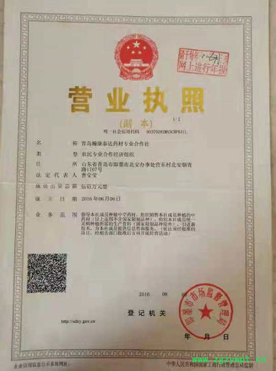 青岛瀚康泰达药材专业合作社,成立于2016-06-06,注册资本为500万,法定代表人为曹莹莹,经营状态为在业,工商注册号为370282NA001498X,注册地址为山东省青岛市即墨市北安办事处营东村北安烟青路1707号,经营范围包括指导本社成员种植中草药材,组织销售本社成员种植的中药材(以上范围不含国家限制品种),组织本社成员统一采购种植所需的生产资料(国家限制品种除外),引进新技术,为本社成员提供信息咨询服务。(依法须经批准的项目,经相关部门批准后方可开展经营活动)