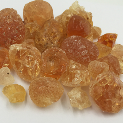 干的桃胶呈结晶石状很硬,看着有点像琥珀。桃胶有足够的水溶性和适当的粘度,用清水浸泡十多个小时候后泡发变软。树胶的主要组成为半乳糖、鼠李糖、α-葡萄糖醛酸等。