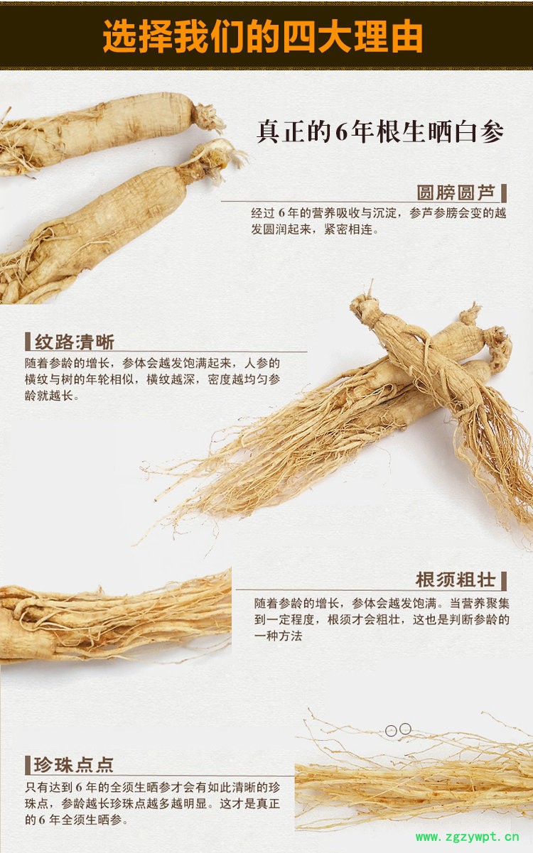 产地批发东北人参 长白山生晒白参 8年足干园参规格齐全量大从优