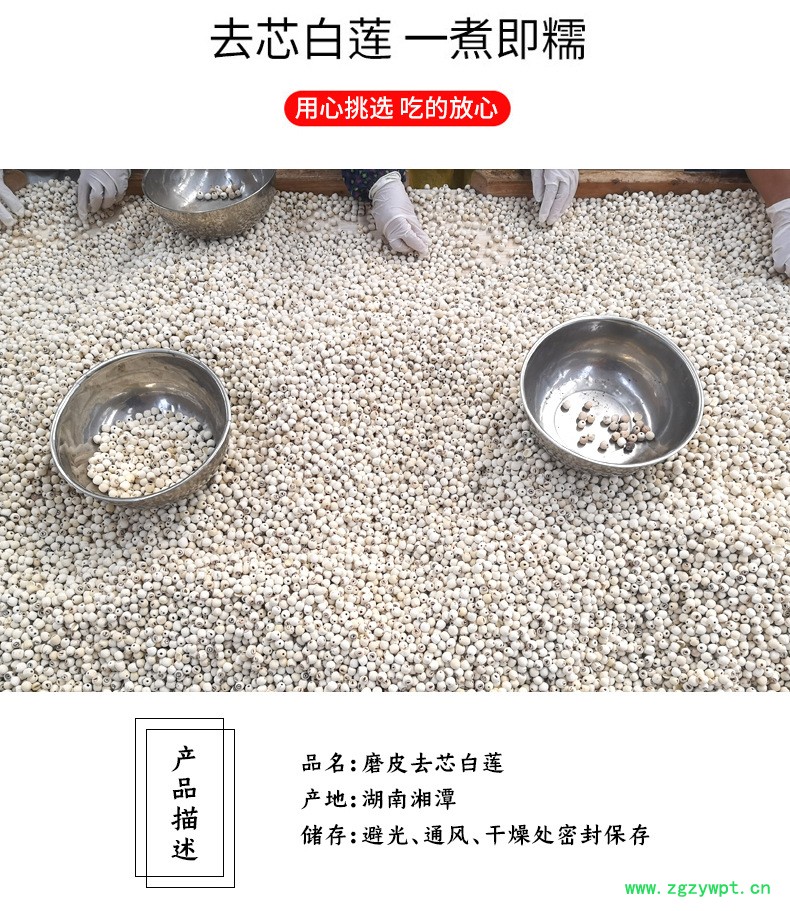 2021年新货上市 湖南特产寸三白莲子 去芯磨皮白莲子 湘莲子500克