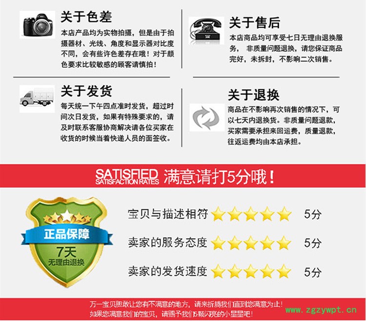 我们将提供完整的售后服务,当您收到货不满意时,7天之内,您随时可以退货。。若不满意或有何意见或建议,敬请告诉我们以便改进!若您对这次交易满意,请别忘了给我们好评的支持。