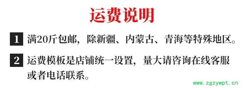 满20斤包邮,除新疆、内蒙古、青海等特殊地区。