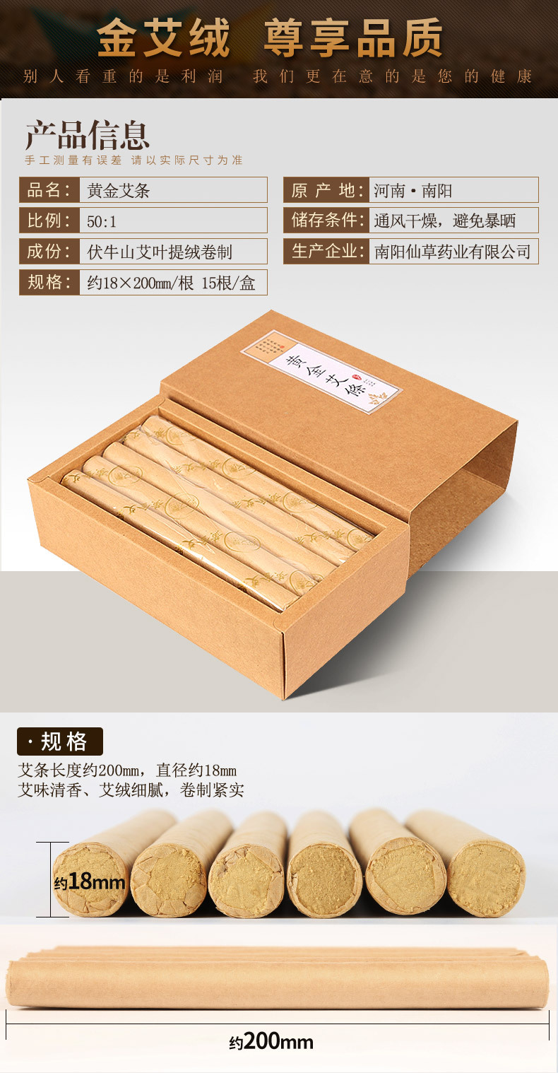 15根盒装黄金艾条 陈年金艾绒50:1艾灸条 批发南阳艾草条艾制品