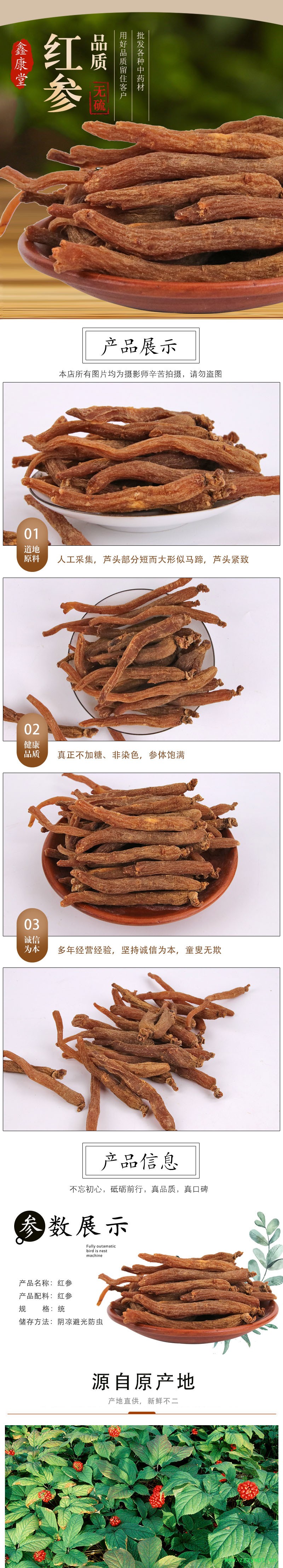 中药材批发红参 东北吉林长白山小红参 山参可切片红参个
