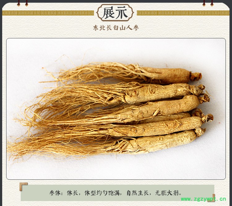 长白山人参 生晒参 全须白参 原皮参白参 20-25大枝头