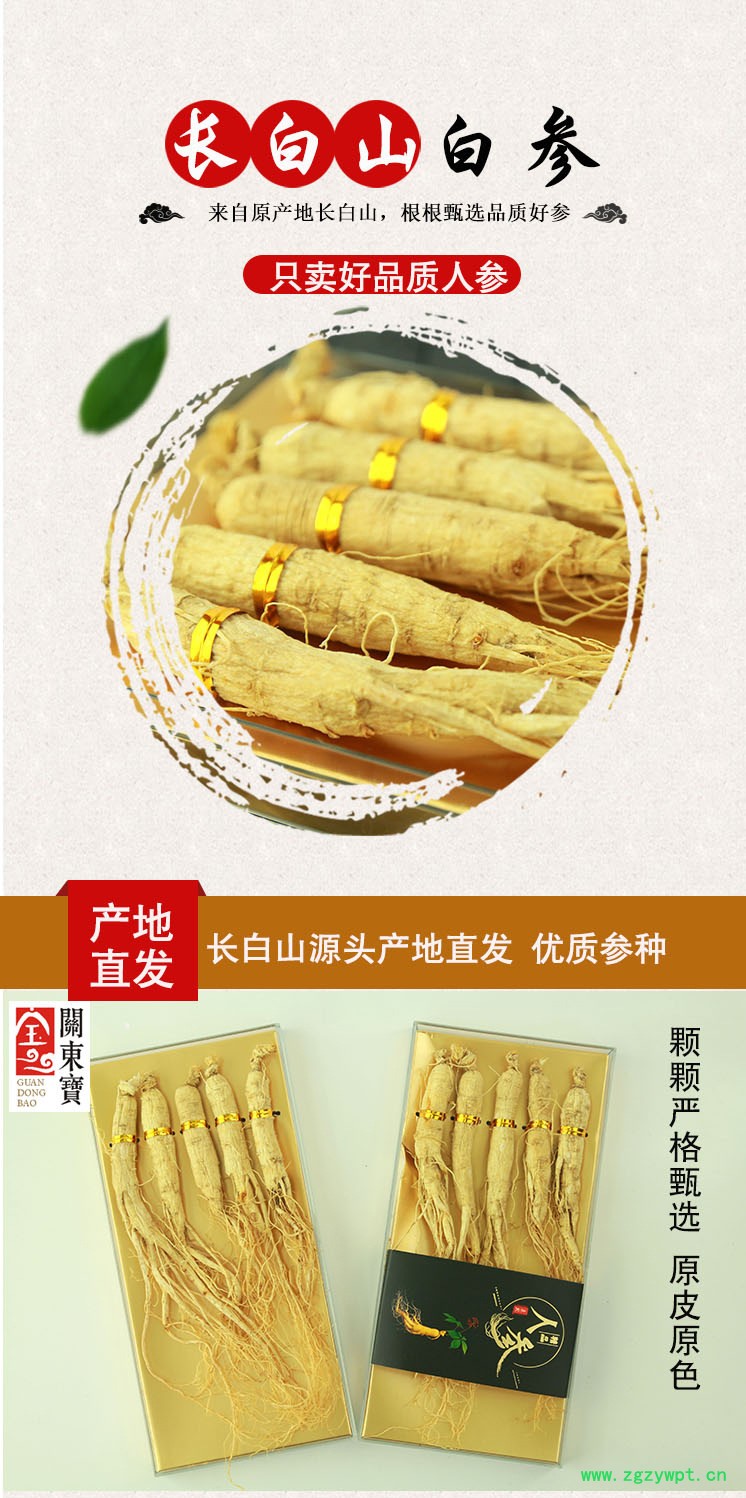 生晒参人参东北长白山新鲜原皮白参6年根礼盒装