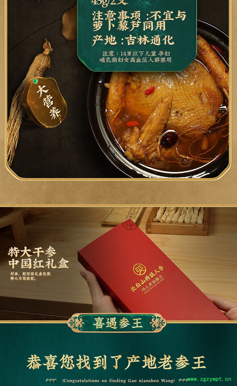 【长白山15年老参王】野山参长白山人参生晒参干人参泡酒煲汤人参
