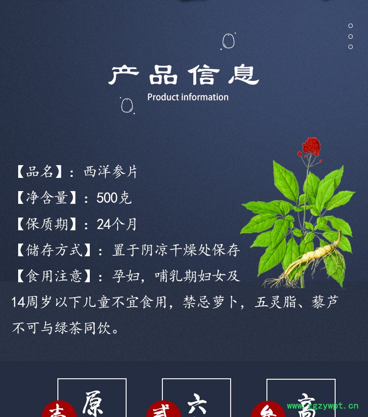 西洋参小片 正宗长白山西洋参切片花旗参片 正品西洋参粉500克