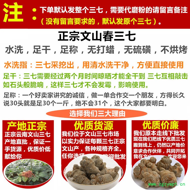云南文山春三七水洗干净田七20头30头40头60头足干产地批发