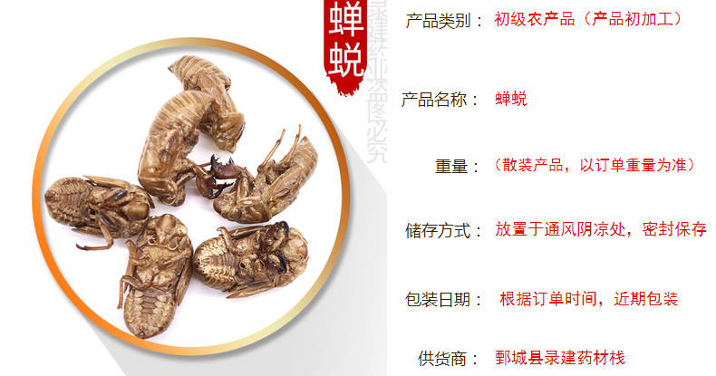 批发零售常用中药材 水洗蝉蜕 爬叉壳 金蝉壳 500g 产地山东 蝉蜕