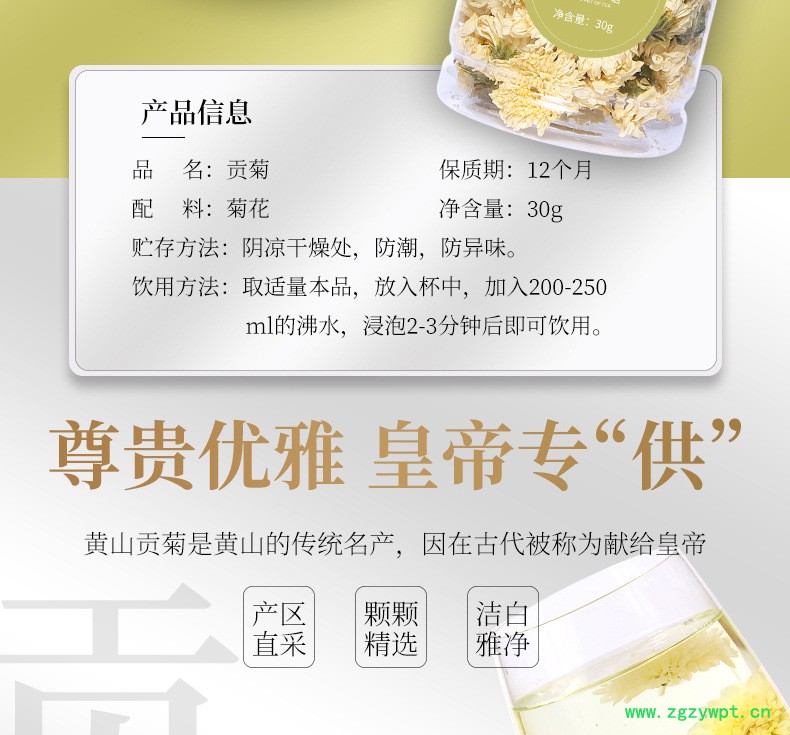 花草茶 菊花茶罐装30g 正宗黄山七月贡菊 白菊花茶一件代发
