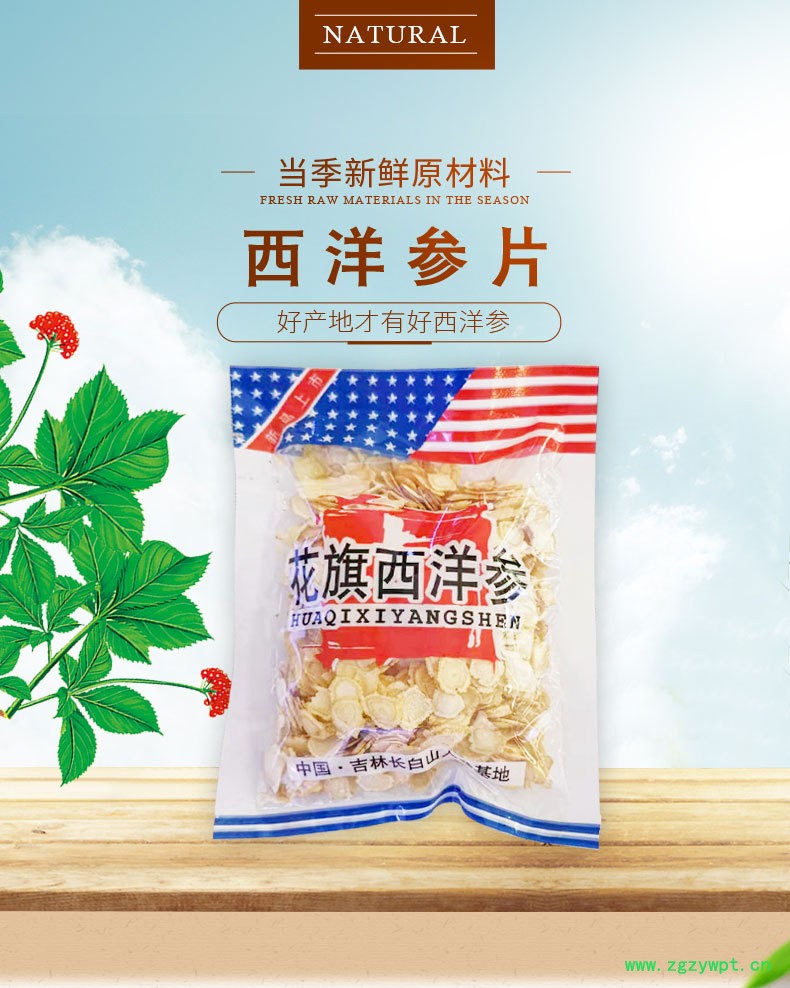 长白山西洋参特产花旗参 西洋参 参片软枝切片原产地厂家批发