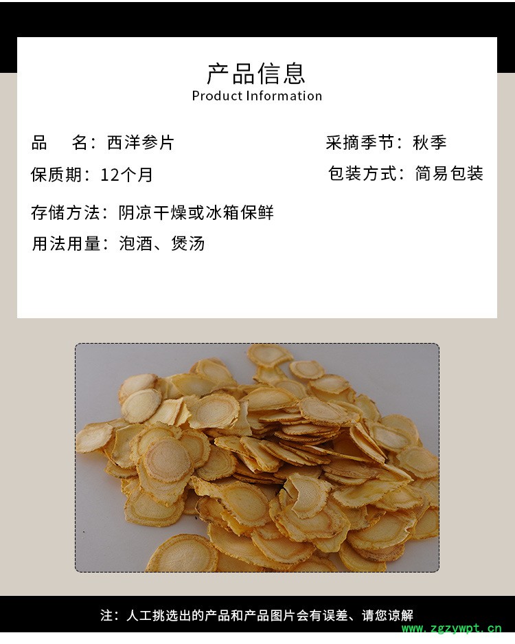 西洋参片盒装250g西洋参切片小片参段切片整齐西洋参
