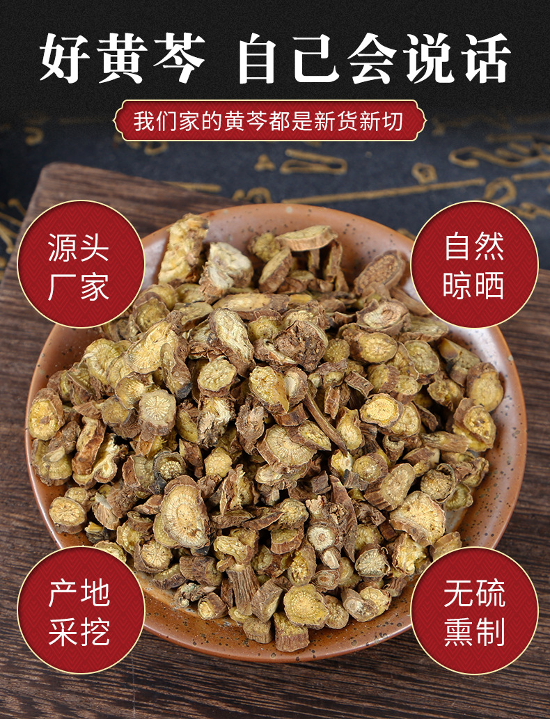 中药材黄芩无硫大货黄芩片土金茶根三物泻心汤饱满切片泡茶煲汤料