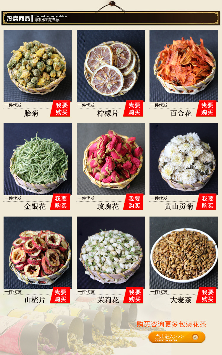 声明2:菊花茶里会有小黑点的虫子,这是因为在花盛开后会有个别蚜虫钻进花心里,采摘加工后就在里面了,无法挑拣出来,要想避免这个现象就要喷洒大量的农药,这样就会造成高农残。为保证每朵菊花的质量安全,在花期前的一段时间里就已停止使用农药,所以说这种现象是正常存在的,并非产品质量问题。介意的请勿下单!下单后即表示认可本声明。(此种情况不作为以盈利为目的的一切恶意赔偿依据)建议大家泡茶之前应该先试试洗茶,就是先用滚开的水冲泡,等10秒钟左右把水倒掉,这样可以把大部分藏在花蕊里的小虫子冲走,然后再正常冲泡。也可以拿有过滤的茶壶冲泡,再把茶水倒进杯子里饮用。