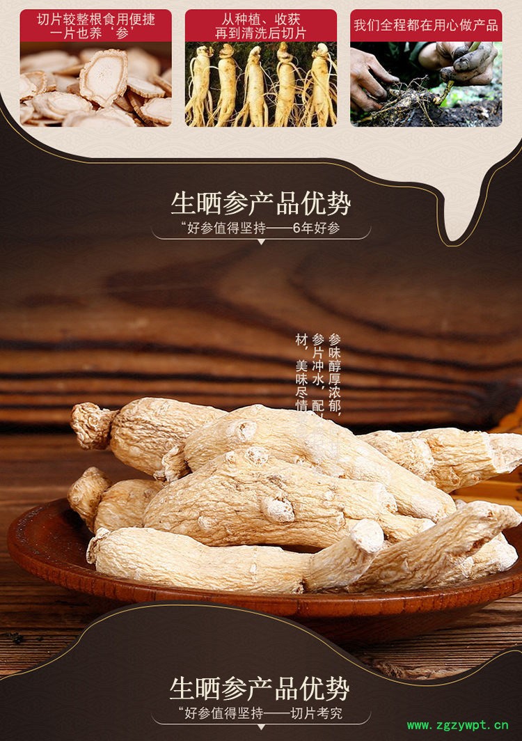 白参枝头长白山白参段吉林原皮生晒参条切片东北人参棒无须参长支