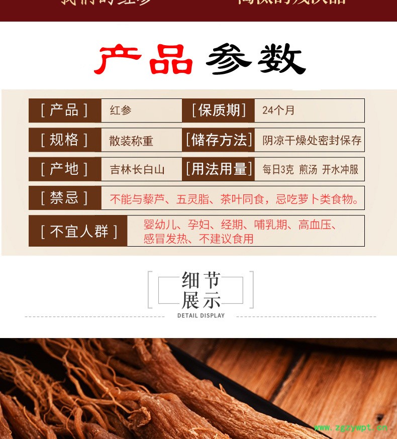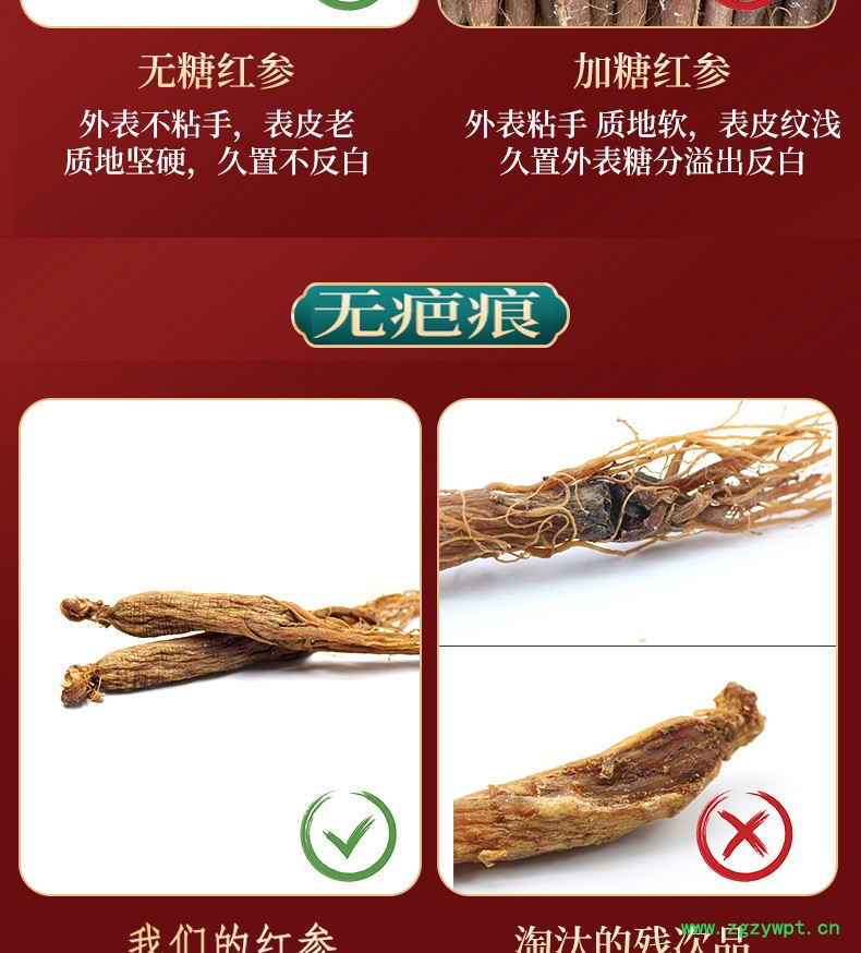 无糖红参长白山红全须吉林人参原皮红参东北特产红参光支500g滋补