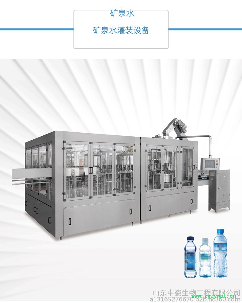 产品介绍 本系列设备用于聚脂瓶装各种纯净水、矿泉水的生产。在一机上实现冲瓶、灌装、封盖。整机设计科学合理,外形美观,功能齐全,操作维修方便,自动化程度高。灌装速度快,液面控制稳。采用风送进瓶、夹瓶口、冲洗、卡瓶口灌装、封盖、不受瓶子高矮限制,只要瓶口、瓶盖相同随意更换瓶形,更换一下拔轮板即可。油尼龙齿轮传动,噪声小,整机运转平稳。采用磁力扭矩式拧盖头,实现抓盖、拧盖功能。拧盖力矩无级可调,具有恒力矩旋封塑盖功能,且不伤盖,封口严密可靠。水平回转式气力理盖器,具有不损坏瓶盖表面,料斗内缺盖发信号自动补充盖等功能。整机采用PLC电脑程序控制及人机界面触摸屏按钮,具有料缸内液面自动控制,无瓶不灌装,无瓶不加盖功能,并有拨瓶星轮卡瓶错位停机,盖滑槽内缺盖停机等功能。