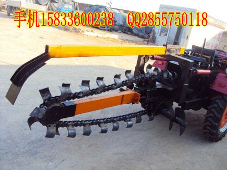 我公司生产的链式开沟机使用时风牌双缸35马力四驱动(其他厂家都是两驱的)拖拉机 ,变速箱(质保三年),6*12的方钢,切削刀片有蒙钢和合金刀头两种!!!