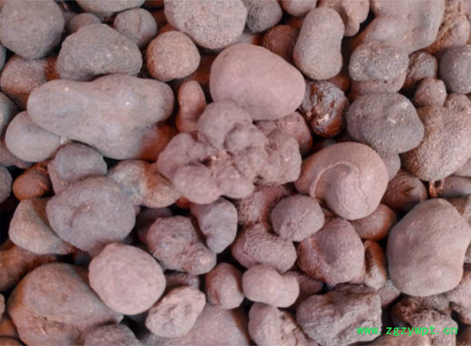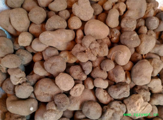 雷丸为白蘑科真菌雷丸的干燥菌核。秋季采挖,洗净,晒干为类球形或不规则团块,直径1~3cm。表面黑褐色或灰褐色,表面有略隆起的不规则网状细纹。质坚实,不易破裂,断面不平坦,白色或浅灰黄色,常有黄白色大理石样纹理。