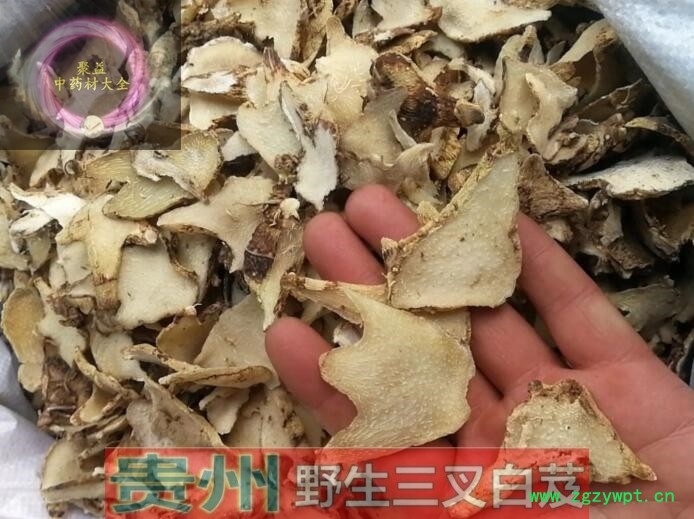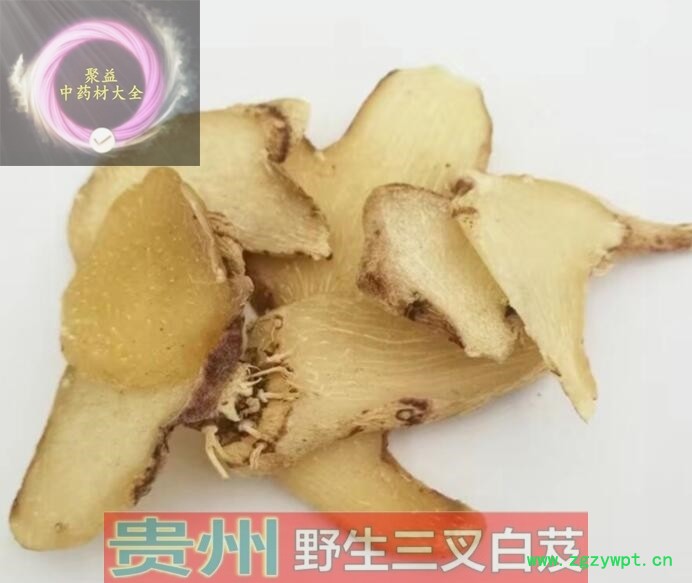 白及为多年生草本。块茎三角状扁球形或不规则菱形,肥厚肉质,富黏性,常数个相连。茎直立。叶3~5片,叶片披针形或宽披针形,先端渐尖,基部下延呈长鞘状抱茎,全缘。