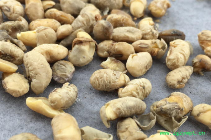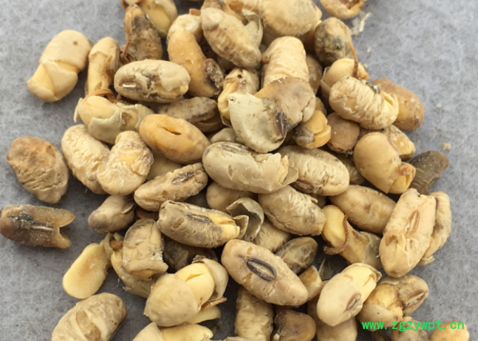 大豆黄卷为豆科植物大豆成熟种子经发芽干燥的炮制加工品。取净大豆,用水浸泡至膨胀,放去水,用湿布覆盖,每日淋水二次,待芽长至0.5~lcm时,取出,干燥。