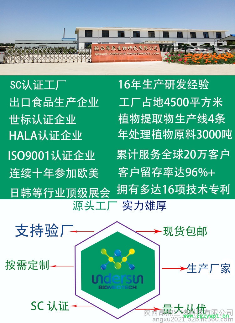 【竞争优势】:SC备案厂家供应,生产检测设备科学先进,拥有独立实验室,可随时验厂参观考察,十六年植提工厂,专注天然品质