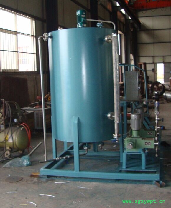 | 一、概述 本厂生产的炉内加药装置包括给水加氨,加联胺,炉水加磷酸盐,炉水加磷酸盐协调控制,凝结水加氨等系统. ??加药装置的单元组合形式主要视机组容量大小,锅炉配置的方式(二炉共用一套或单炉单套等),自动化水平的高低(自动或手动控制),加药泵种类的选用(交流或支流马达,进口或国产泵)灵活的组成各种不同形式单元,安装在一个底座上,这种工厂化的整套装置,大大减少了设计和现场安装的工作量,对整机的质量,安全和现场投运提供了可靠的保证. ??单元组合装置各部件材质,主要分为不锈钢,碳钢,和碳钢衬胶等几种形式,视用户需要而定. 二、分类 1、炉水加磷酸盐系统: ?? 磷酸盐溶液的配制系统图所示磷酸三钠直接加入溶液箱搅拌配置外,亦可单设4m3的溶解箱,经输液泵先循环搅拌后,再进入溶液箱的配制方法. ? 加磷酸盐量的控制除手工控制外,亦可进行自动控制:依据炉水磷酸根表的采样信号,经微机综合处理后的输出,控制加磷酸盐泵的量达到自动加药的目的. 2、给水、凝结水加氨系统: ? 氨液的配制除手工配制外亦可进行自动控制:当溶液箱液位低于设定值时,自动开启凝结水进口电磁阀至高液位时关闭,在溶液箱出口管道上安装的导电度仪表的测量值,控制进氨阀门开启,当浓度为±1相当于450 us/cm的导电值,自动关闭进氨阀,完成配药过程. ? 加氨量的控制除手工控制外,亦可进行自动控制:依据给水导电度(或PH值)的采样信号,经微机综合处理后的输出,控制加氨泵的加氨量达到自动加药的目的. 3、炉水磷酸盐协调控制系统: ? 在以除盐水作为补给水的高参数,大容量汽包锅炉中,既使炉水中保持合适的PH值,又防止产生游离NaOH,兼有防腐防垢功能,这**是炉水磷酸盐协调处理的目的,在保证炉水PH,PO3-符合部颁标准前提下又使炉水中无游离NaOH的水质工况是靠向汽包内添加Na3PO4+Na2HPO4或Na3PO4+NaOH的混合液来实现的.两种配方的选择主要由锅炉炉水水质决定,而配方的定量-即Na/PO4比(R值)是通过PH和PO3-的测量,查表得到的. ? 由于可靠的磷酸根和PH测量仪表,微机软件技术的开发,及性能优良的电控加药计量泵的应用,使得炉水磷酸盐协调处理成为可能,并彻底解决了传统磷酸盐处理存在的主要问题. ? 三、系统组成: 如图所示是按照两桶三泵的一套加药装置.