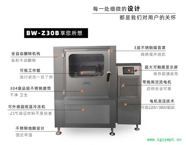 我公司生产的“百顺达”牌“BW”系列超微粉碎设备具有智能化控制.超微粉碎产量大、细胞破壁率高、超低温粉碎.全密闭无损耗.无粉尘溢出.高糖高油高纤维作业等优良突出的特点。超微粉碎的粉体粒径可达1~0.1μm,细胞破壁(膜)率达98%以