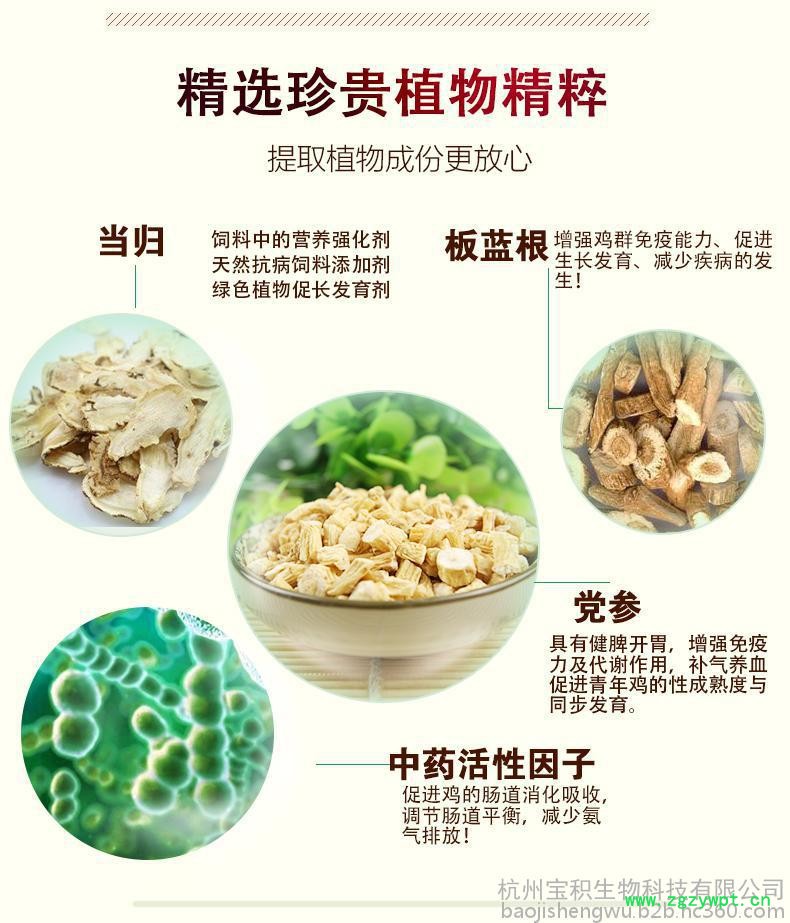 【宝积青年鸡饲料使用说明】推荐用量: 按饲料的5%比例拌料,不得直接饲喂。