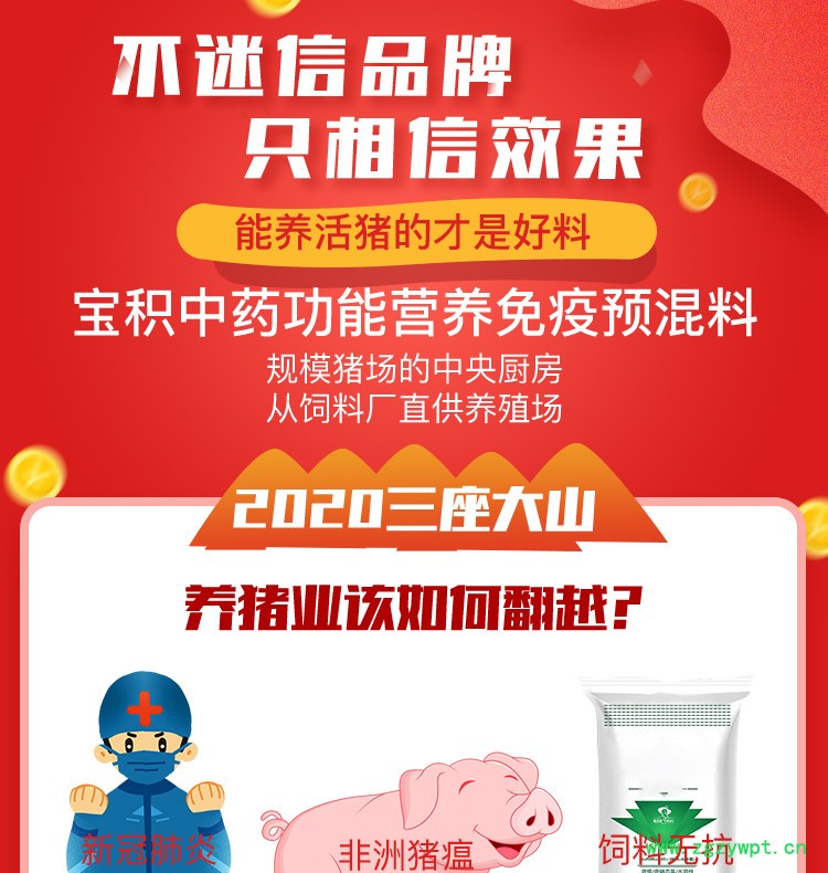 【怀孕母猪预混料性状】本品为黄色、黄棕色、黄褐色或棕色粉末【怀孕母猪预混料原料组成】饲料级维生素(A、D3、E、K3、B1、B2、B6、B12)、泛酸、生物素**、饲料级微量元素(铜、铁、锌、锰、碘、硒)、钙、磷、氯化钠、赖氨酸、植酸酶。载体为沸石粉、黄芪粉、党参粉、山药粉。【怀孕母猪预混料主要功能】1.调节肠道预防母猪便秘现象2.保障妊娠期间各种营养物质均衡供给,保证胎儿的正常发育,提高仔猪的出生重3.提高繁殖性能,大幅度减少死胎及流产的情况;促进排卵,提高产仔数4.弥补机体酶类的不足,增强消化道酶的活性,提高饲料的转化率【怀孕母猪预混料适用范围】妊娠母猪【怀孕母猪预混料使用说明】推荐用量: 按饲料的5%比例拌料,不得直接饲喂。注意事项: 本品不作为临床药物使用,动物免疫程序和卫生防疫照常进行。要注意保温、通风、科学管理、保持饲养环境良好和正确的饲养方式。【贮存条件及方法】密封,阴凉干燥处保存【净 含 量】20kg【保 质 期】4个月【卫生要求】本产品符合饲料卫生标准GB 13078的规定。【生产者名称】 杭州宝积生物科技有限公司 【注册地址】浙江省杭州市余杭区余杭街道义桥村【生产地址】浙江省杭州市余杭区余杭街道义桥村新庵前100号【邮政编码】311121