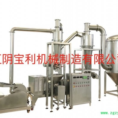 具体粉碎物品有辣椒、胡椒、黑胡椒、白胡椒、绿胡椒、肉桂、孜然、草寇、大红袍花椒、桂皮、红寇、红曲米、豆蔻、红麻椒、蒜香、八角、丁香、砂仁、香叶、草果、姜黄、干姜、白芷、小茴香、大料、油性物料及纤维性物料等物料,不需要粗粉碎可直接投料,产量大,不变色,维持物料的原有物理化学特性。