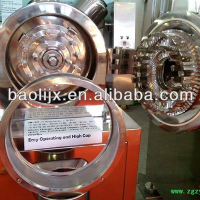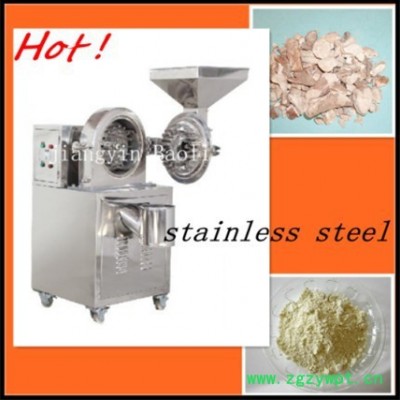 本机利用活动齿盘和固定齿盘的高速相对运动,使被粉碎物经齿冲击、磨擦及物料彼此间冲击等综合作用获得粉碎。本机结构简单、坚固、运转平稳、粉碎效果良好,被粉碎物可直接由主机磨腔中排出,粒度大小通过更换不同孔径的网筛获得,另外该机为全不锈钢。机壳内壁全部经机加工达到表面平滑,改变了以前机型内壁粗糙、积粉的现象、使药品、食品、化工等生产更能符合**标准,达到了GMP的要求。