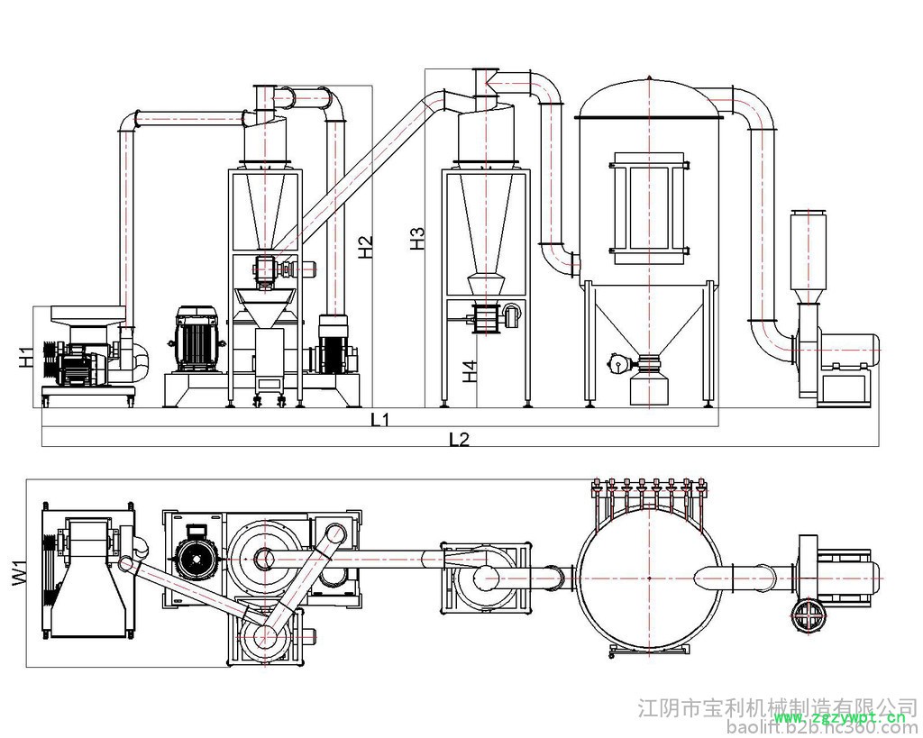 设计紧凑,相较于微粉碎机组,多加前道工序锤片进行粗粉碎,使得大颗粒物料能直接进行细粉碎,粉碎过程连续,无粉尘。粉尘捕集袋截留的细粉能有效回收,降低了物料的损耗率。
