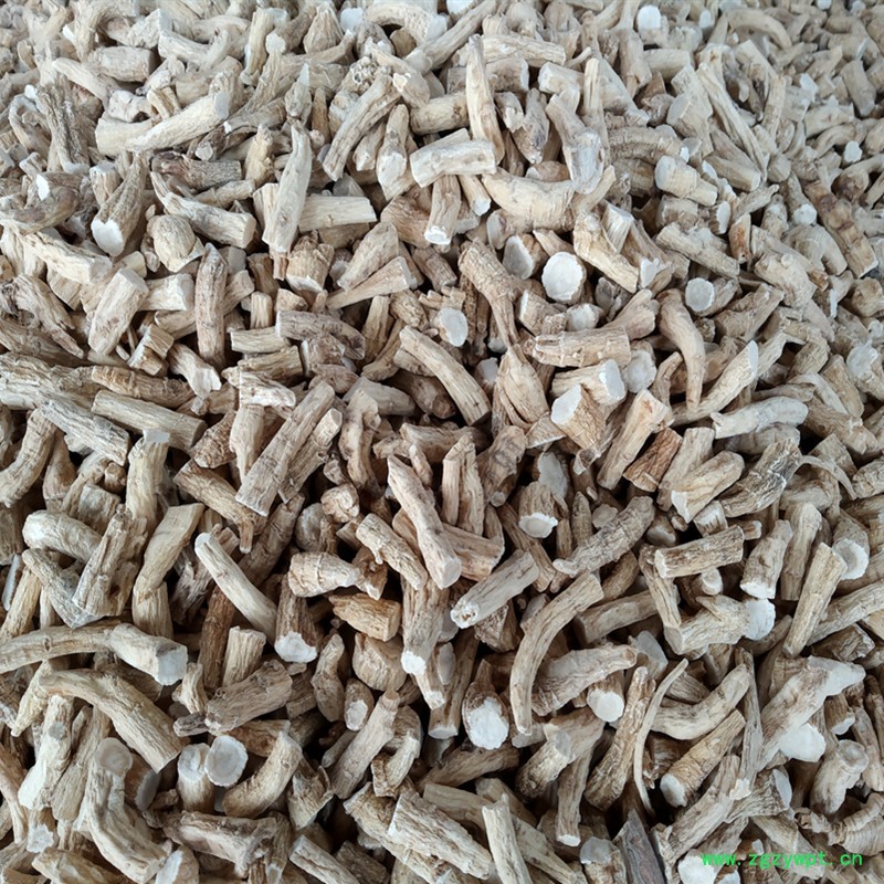 [性 状]:本品呈纺锤形、圆柱形或圆锥形,长2~8cm,直径0.5~2cm。表面浅黄褐色或黄白色,可见横向环纹及线状皮孔,并有细密浅纵皱纹及须根痕。断面平坦,浅黄白色,略显粉性,皮部可见黄棕色点状树脂道,形成层环纹棕黄色,本部略呈放射状纹理。气微而特异,味微苦、甘。