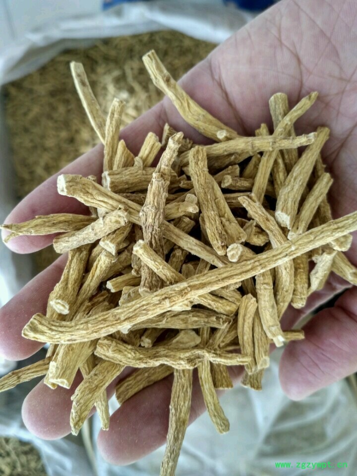 [性 状]:本品呈纺锤形、圆柱形或圆锥形,长2~8cm,直径0.5~2cm。表面浅黄褐色或黄白色,可见横向环纹及线状皮孔,并有细密浅纵皱纹及须根痕。断面平坦,浅黄白色,略显粉性,皮部可见黄棕色点状树脂道,形成层环纹棕黄色,本部略呈放射状纹理。气微而特异,味微苦、甘。