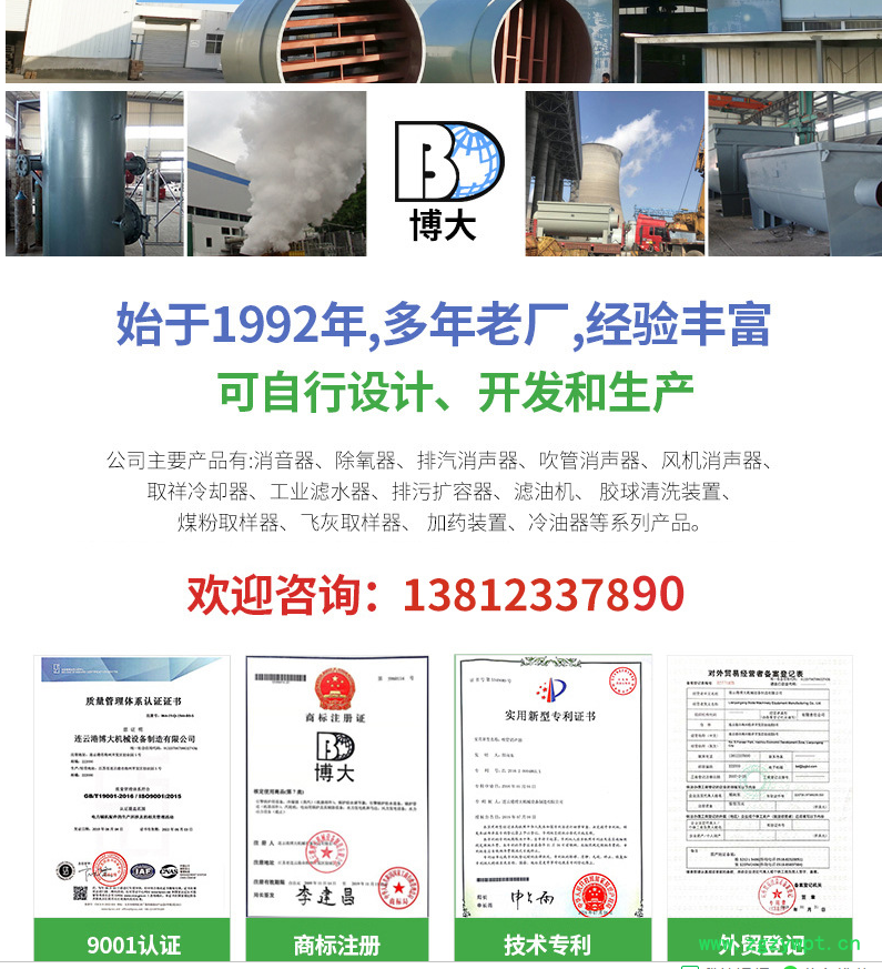 3)结构可选定小孔式或抗喷阻复合型。一般用户选购复合型消音器,消音效果好,材质内部为不锈钢,壳体材料为碳钢;接管可选取焊接或法兰对接;支腿可选取腿式或耳式结构。