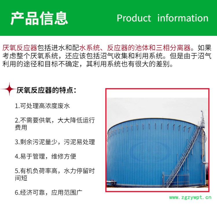 气液分离区:被提升的混合物中的沼气在此与泥水分离并导出处理系统,泥水混合物则沿着回流管返回到**下端的混合区,与反应器底部的污泥和进水充分混合,实现了混合液的内部循环。