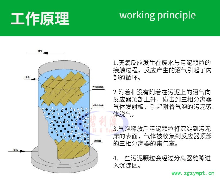 混合区:反应器底部进水、颗粒污泥和气液分离区回流的泥水混合物有效地在此区混合。