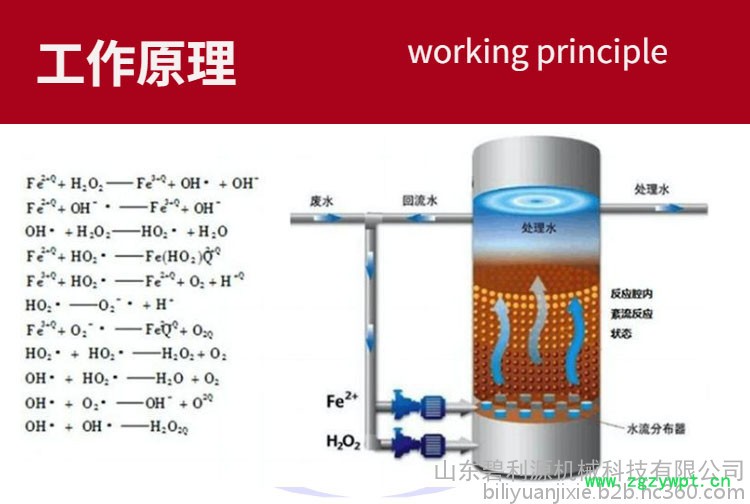 芬顿反应器可通过氧化方法提高污水的可生化性。芬顿试剂为常用的催化试剂,当PH值足够低时,在亚铁离子的催化作用下,过氧化氢会分解产生OH-,从而引发一系列的链反应。芬顿试剂在水处理中的作用主要包括对有机物的氧化和混凝两种作用。