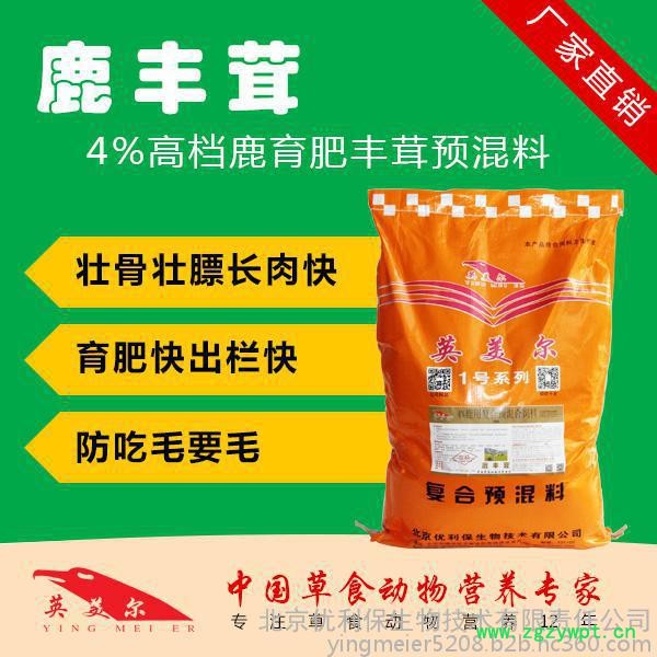 针对产茸鹿的生长营养有别于其它动物的特殊需求,北京英美尔公司专门研制了4%鹿专用预混料--鹿丰茸,本品含有充足的维生素及微量元素,除保证茸鹿日常生理需求之外,还能促进提高鹿茸生长。此外,产品中所添加的纤维素酶更能分解纤维素,提高同时饲喂的青绿饲料,干草料的利用率。配合其他日粮合理使用**是一加一大于二的效果。英美尔品牌鹿饲料,懂你所需!英美尔品牌鹿饲料,懂你所需,给你所要!
