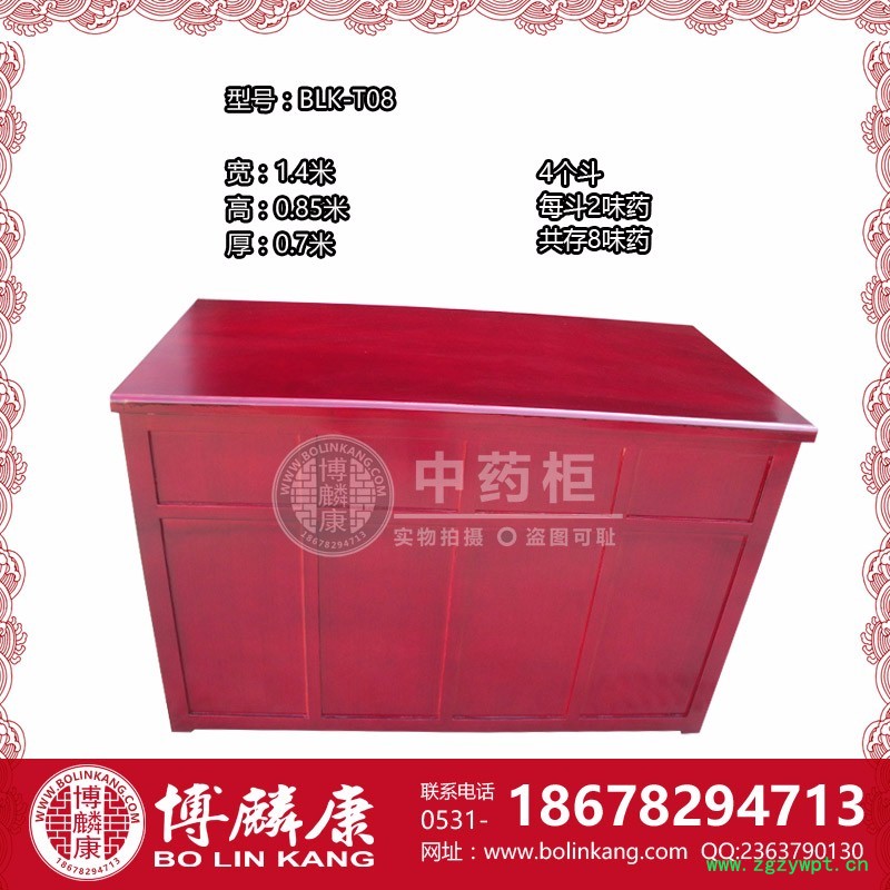 山东博麟康信息技术有限公司目前专业生产精美高中低档中药柜、纯实木中药橱、中药操作台等中药房专用产品,专业服务于各类中医医院/卫生院/药店/诊所等机构。“诚信为本”我公司竭力做好自己的产品、以顾客满意为宗旨。在秉承传统风格的基础上,开辟出一系列新的产品造型,保证了我公司在市场竞争中处于**地位。我们逐步在全国多个地区建立合作单位,产品畅销国内各省、市、自治区,深受用户的欢迎和信赖。 我公司依据多年的实木中药柜、中药斗生产及销售经验,把传统的榫卯结构(如:燕尾榫、十字榫)和现代化设备生产做到了**的融合,建成了从木材烘干、下料、精加工、组装到喷漆包装的现代化的生产流水线。所生产的产品结合严密、结构牢固、尺寸合理、质量稳定、经久耐用。