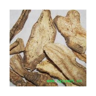 药材性状:干燥根略呈纺锤形或圆锥形,大小不等,一般长6~12厘米,直径1~3厘米,有时有分枝。上部较粗,有众多的横皱纹,下部稍细;有纵皱及细根痕迹。外表灰棕色至土黄色,粗糙;除去栓皮的呈灰白色或淡黄白色。质疏松而轻,易折断,断面类白色,多裂隙。味苦微辣。