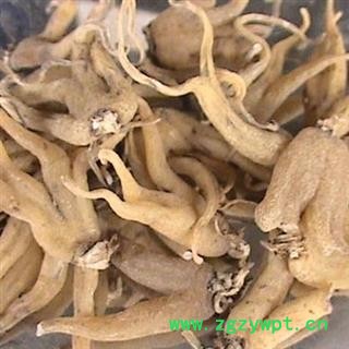 药材性状:手参块茎稍扁,形如手掌,长1-4.5cm,直径1-3cm,表面浅黄色或暗棕色,有细横皱纹,顶端有茎残基,其周围有点状根痕;下部有4-12指状分枝,分枝长0.3-2.5cm,直径2-8mm。质坚硬,不易折断,断面黄白色,角质样。气微,味淡,嚼之发粘。