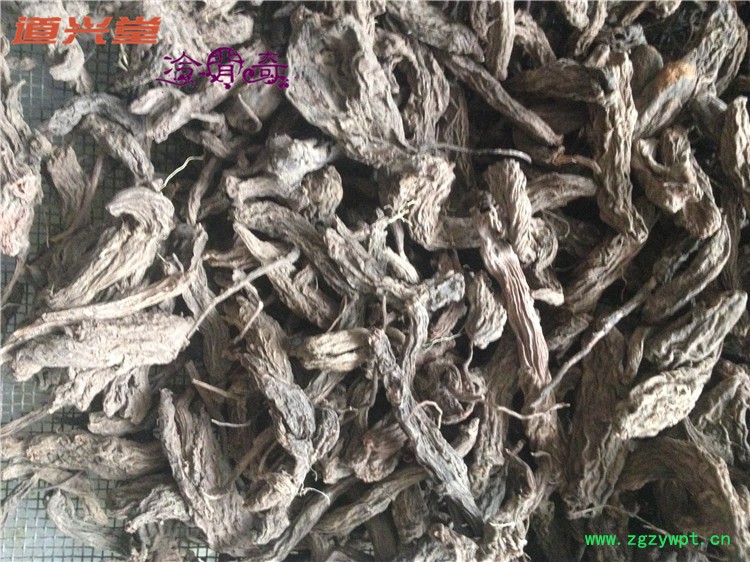 [性 状]:该品块根呈长圆锥形或长纺锤形,多不分枝,稍弯曲,长3~12 cm,直径0.6~1.2 cm。表面棕红色或灰棕色,有扭曲的纵皱纹;顶端可见茎痕。质坚实而易折断,断面皮部红褐色,木部棕黄色。气微,味微辛。以个大、质坚实、色红褐色者为佳。
