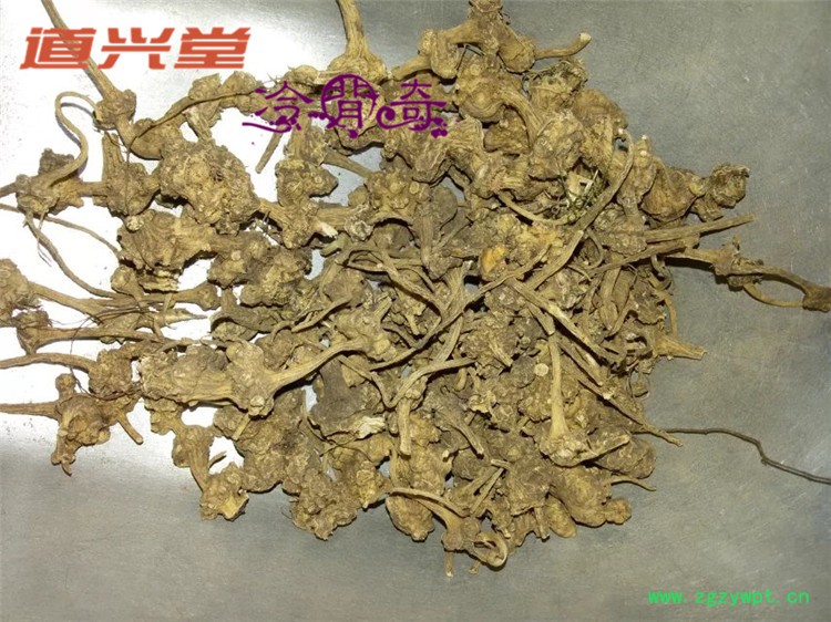 [性 状]:该品干燥根茎呈不规则的类圆锥形,长约1.5~4厘米,直径1~3厘米,表面黄棕色至半透明琥珀色,少数呈黑棕色,有细纵皱纹及凸起的支根残基,偶见竹节纹。质坚硬,不易折断,断面黄白色,不平坦,颗粒性。有特殊气味,味苦。以个大,饱满、明亮、无竹节纹及粗皮者为佳。