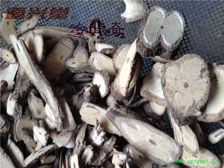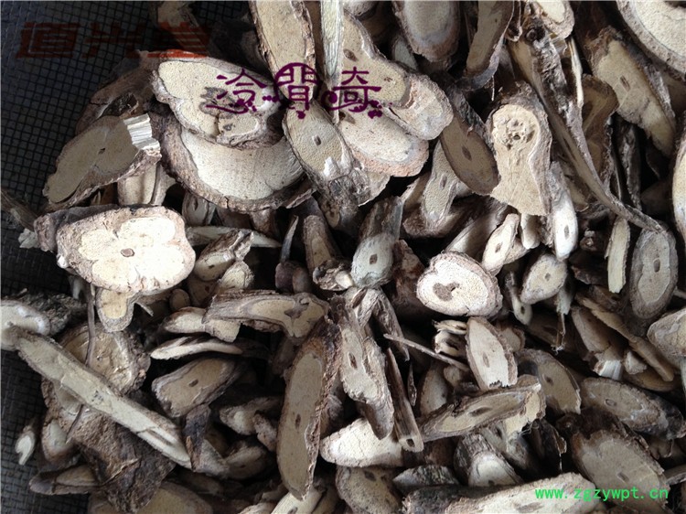 [性 状]:该品根圆柱形,略弯曲,直径0.5-1.5cm。表面棕黑色,具浅纵皱纹及点状突起的细根痕。质硬,断面皮部浅棕色,木部灰黄色,有细密放射状纹理和小孔。气微香,味微苦、辣。