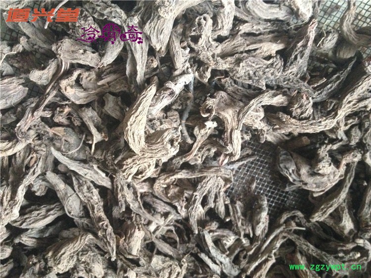 [性     状]:该品块根呈长圆锥形或长纺锤形,多不分枝,稍弯曲,长3~12 cm,直径0.6~1.2 cm。表面棕红色或灰棕色,有扭曲的纵皱纹;顶端可见茎痕。质坚实而易折断,断面皮部红褐色,木部棕黄色。气微,味微辛。以个大、质坚实、色红褐色者为佳。