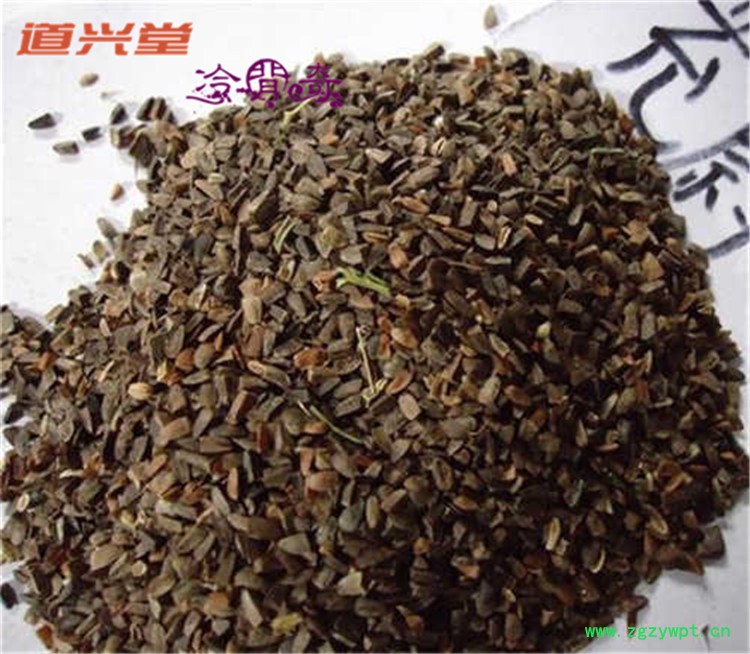 [性 状]:该品小坚果长圆形,具三棱,长2-3mm,直径1-1.5mm,上端平截,下端渐窄,有凹入的果柄痕。表面灰褐色或褐色,有稀疏深色斑点。切面果皮褐色,胚乳、子叶白色,富油质,气微、味苦。以粒大、饱满者为佳。