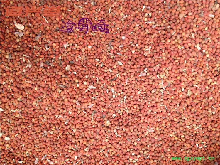 [性 状]:该品果实呈扁圆形或卵圆形,长1.5-3mm,直径约1.5mm厚至lmm。表面红棕色,有网状皱纹或疣状突起。一侧有棱.一侧略平或有凹槽,有的具于房柄。果皮坚脆,易压碎,膜质种皮紧贴于果皮内面,胚乳类白色,富油性。气微,味淡。以色红、饱满者为佳。